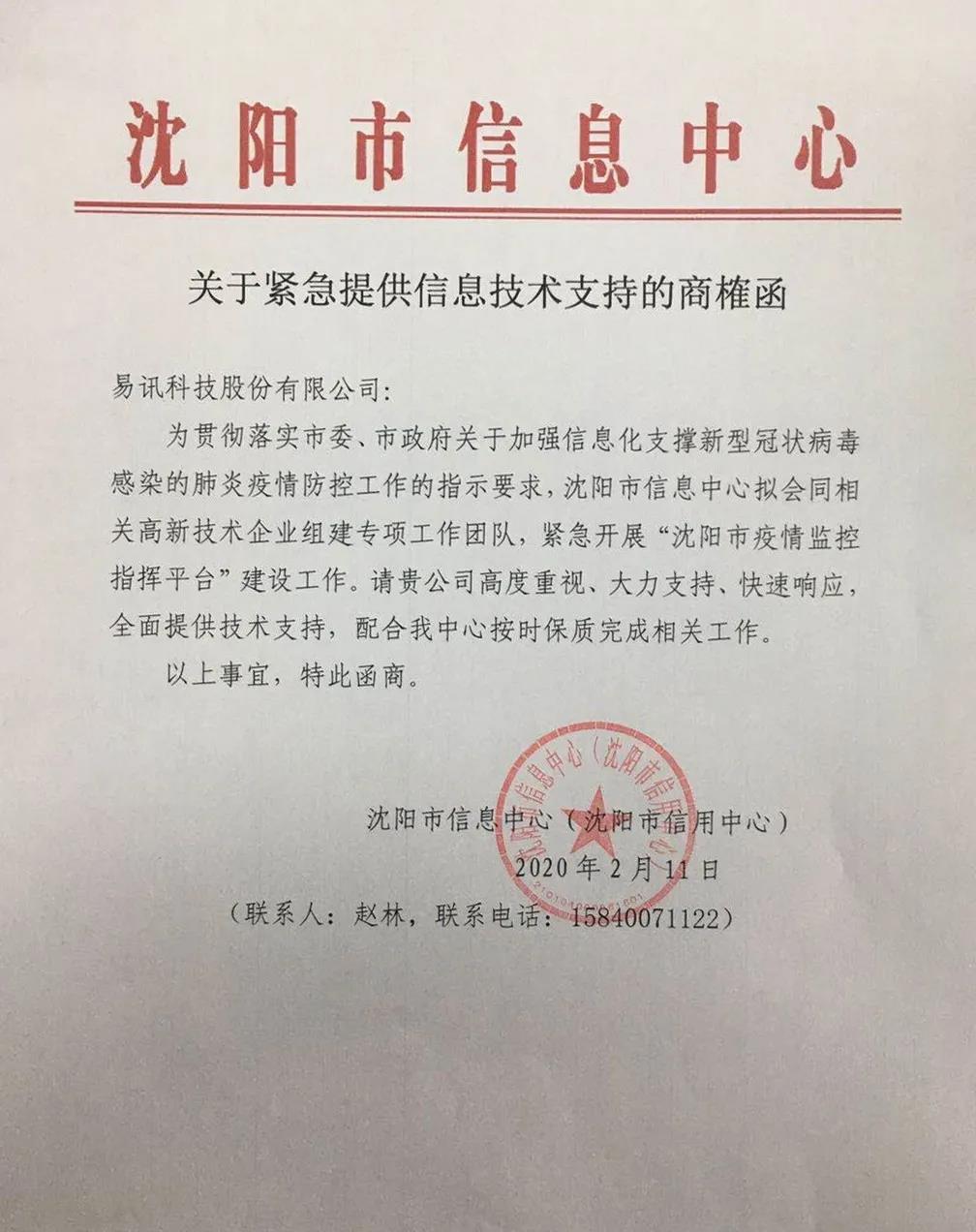 在疫情爆發初期,易訊科技黨委第一時間提出要堅決做到“隨叫隨到、隨說隨辦、決不講價錢”,并主動聯系相關的服務單位,提出服務保障方案,助力所有合作單位防控新型冠狀病毒肺炎疫情期間的信息化保障工作,截至目前,易訊科技先后參與了國家電網及遼寧電力、遼寧省凌源各監獄、沈陽市民政局、沈陽市信息中心、沈河區政府等多家單位疫情期間的技術支持和維護保障工作。