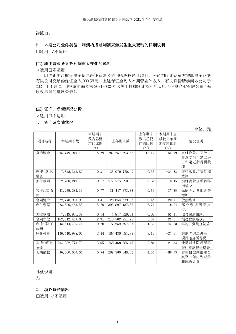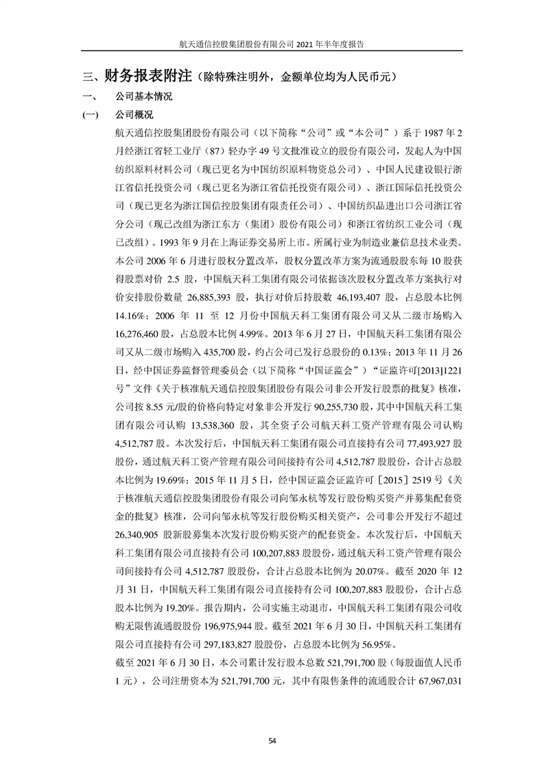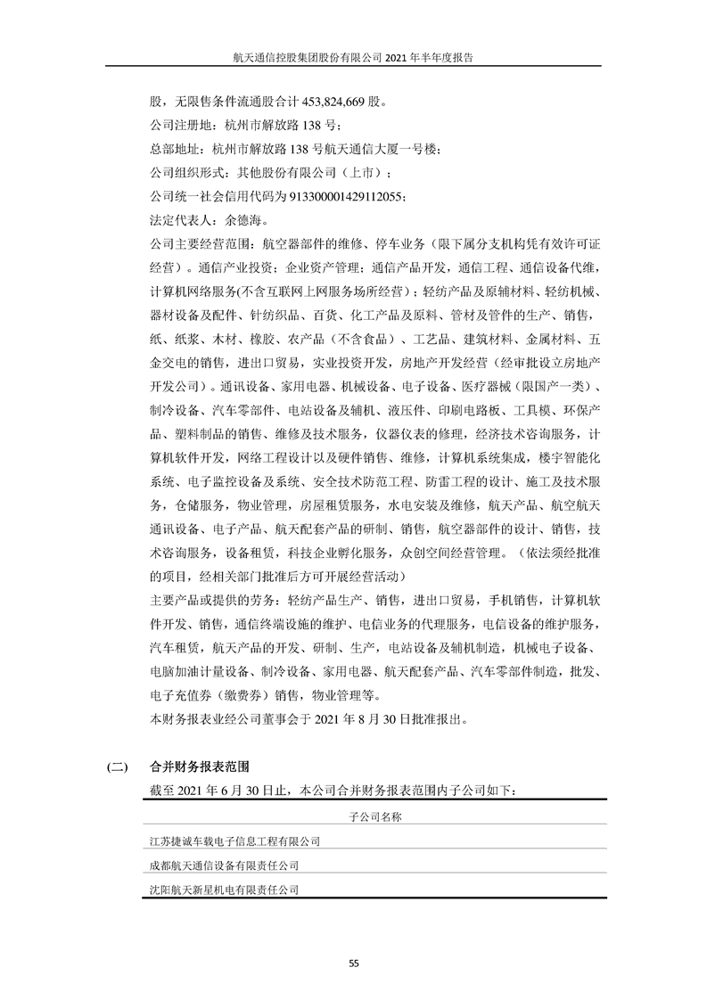 航天通信控股集團(tuán)股份有限公司2021年半年度報(bào)告